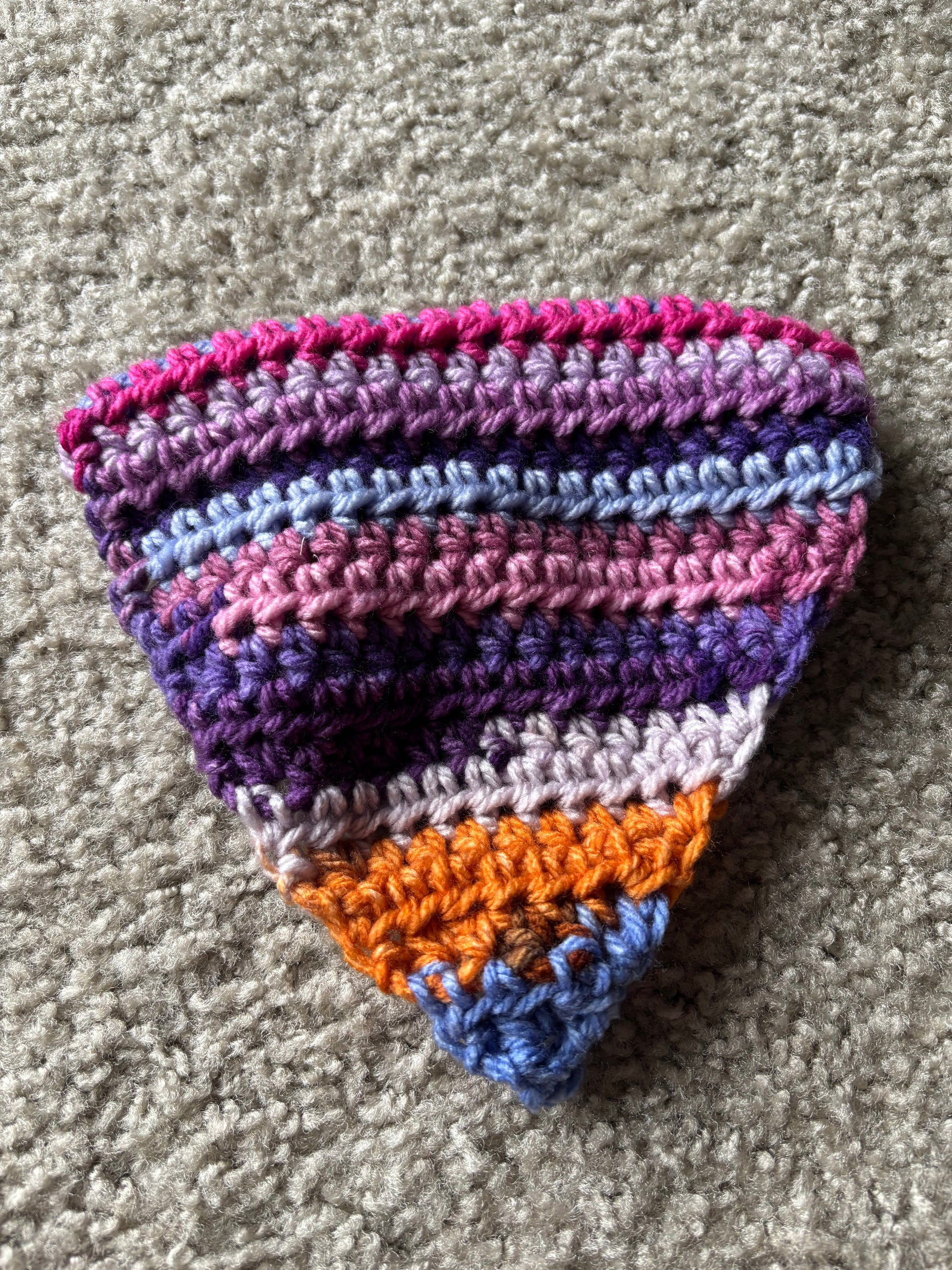 Each bandana is one of a kind due to the self-striping yarn pattern, so no two are exactly alike.